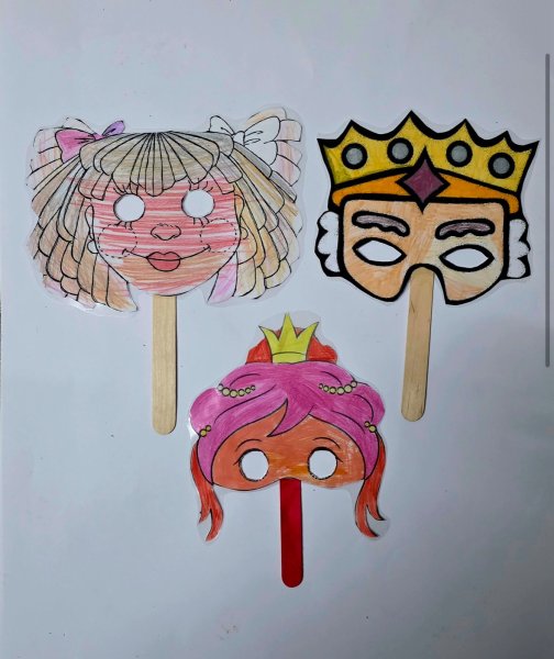 Οι μικροί μας καλλιτέχνες έβαλαν όλη τους την ενέργεια και τον ζήλο και κατασκεύασαν μόνοι τους τις θεατρικές τους μάσκες. Σκέφτηκαν το όνομα και έγραψαν ένα σύντομο βιογραφικό του ρόλου τους που να τους εκφράζει.