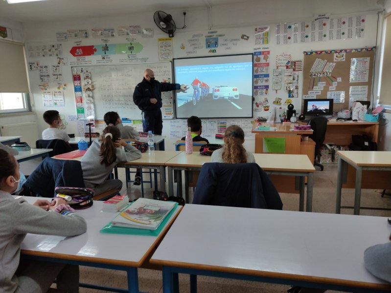 | Τα παιδιά της Γ΄, Δ΄, Ε΄ και Στ΄ τάξης, είχαν την ευκαιριά να παρακολουθήσουν ένα μάθημα κυκλοφοριακής αγωγής. Το σχολείο μας επισκέφθηκε ένας αστυνομικός, ο οποίος είχε την ευκαιρία να μοιραστεί πολύτιμες πληροφορίες με τα παιδιά. | ![]() |