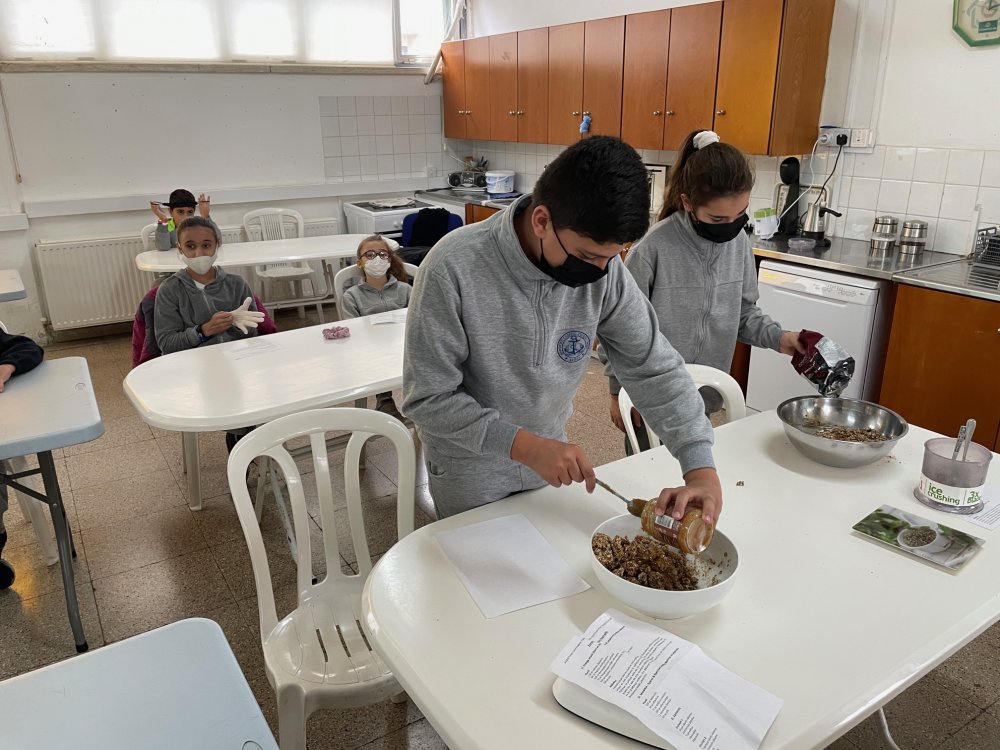 | Τα παιδιά της Ε΄ και Στ΄ τάξης, έφτιαξαν μπάρες ενέργειας στην αίθουσα οικυρικών. Η παρασκευή τους έγινε στα πλαίσια του μαθήματος Αγωγής Υγείας, στην Ενότητα "Διατροφή". | ![]() |