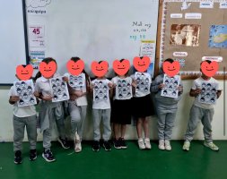 Οι μικροί μας καλλιτέχνες έβαλαν όλη τους την ενέργεια και τον ζήλο και κατασκεύασαν μόνοι τους τις θεατρικές τους μάσκες. Σκέφτηκαν το όνομα και έγραψαν ένα σύντομο βιογραφικό του ρόλου τους που να τους εκφράζει.
